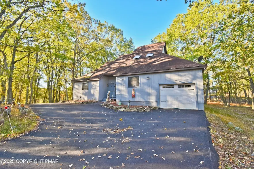 WARM & INVITING POCONO RETREAT! Situated on OVER an acre of wooded property in Pocono Highland Estates, this charming 3bd/2ba home offers plenty of space & convenience, just mins to Rt 611 & 80 for an easy commute. Inside, a BRIGHT & AIRY LAYOUT that immediately feels like home. The SPACIOUS Living Room has cathedral ceilings, a brick fireplace w/ a pellet stove insert, & sliders that lead out to a WRAPAROUND DECK, partially covered for year-round enjoyment. Whether you're sipping morning coffee or hosting summer BBQs, this outdoor space flows beautifully off the Living Room, Dining Area, & 1st-floor bedroom for seamless in/outdoor living. The well-appointed Kitchen is designed for everyday cooking & entertaining, w/ stainless steel appliances. 2bds on the 1st floor & the entire 2nd floor is dedicated to the PRIMARY WING. This SPACIOUS retreat has a walk-in closet, private bath, & a versatile loft that can serve as a cozy den or easily be converted into a 4th bedroom. PLUS, a 1-car garage & generator wiring for peace of mind. Located in a welcoming community w/ convenient access to nearby shops, restaurants, hiking, skiing, & other Pocono attractions. Whether you're looking for a full-time residence or a weekend escape, THIS IS A PLACE YOU'LL LOVE COMING HOME TO.