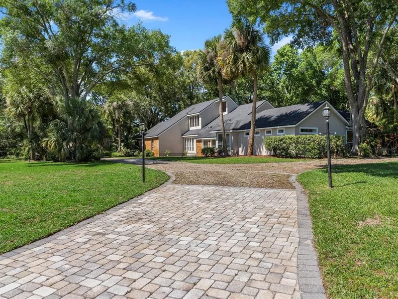 In the heart of Windermere is the private community of Marina Bay Estates. Marina Bay earns its namesake by being set along the beautiful shores of Lake Down, part of the highly desirable Butler Chain of Lakes. Colorful flowers and landscaping warmly greet you at the community entrance. Stately oaks line the streets and each custom-built home rests on over an acre of land. An exceptional opportunity awaits you with this 4-bedroom, 4-bath pool home perfectly positioned on a corner lot of influence surrounded by mature and lush landscaping. This two-story home is an entertainer's dream boasting a generous floor plan, volume ceilings, and fantastic outdoor space. On the main level you will find a large dining room to the left of the foyer, step-down living with brick wood burning fireplace, spacious eat-in kitchen, primary bedroom suite, secondary bedroom, 3 full baths, and laundry room. The unique main level primary bedroom offers two full baths, an enormous sitting room, substantial walk-in closet, and easy access to the private pool and rear yard. On the second level you will find two additional secondary bedrooms, a full bath, and a bonus loft which is an ideal multi-purpose space. Noteworthy highlights; arched brick opening surrounding the cooktop, stainless appliances, 14' floor-to-ceiling fireplace, vaulted ceilings, updated baths, new water heater (2023), new electric panel (2023), converted chlorine to salt water pool (2023), new well pump (2023), architectural shingle roof (2017), circular driveway, expansive covered lanai, paver pool deck, 2-car side load garage, and interior storage room. Windermere offers two exclusive resident-only boat ramps or you can enjoy private boat slips within the community with access to the famed Butler Chain of Lakes. You will love skiing, fishing, and boating in your own community. Students in Marina Bay can attend the prestigious schools of Windermere Elementary, Gotha Middle and Olympia High School. This is a hidden treasure and offers a rare combination of value and convenience in a quiet, friendly neighborhood with NO HOA.