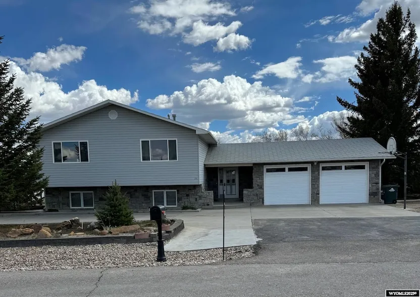 This country property is located on a 1.02 acres corner lot north of Rock Springs. The home sits near the front of the lot leaving plenty of room in the back of the lot for more garages, a shop or barn and horse corrals. As you step into the large entry way, you have four different directions you can choose from. Right to the double car heated garage, straight to the laundry room and back door, left up to the main living area with high ceilings and left down to the basement. The upper level has an oversized living room with wood laminate floor and gas fireplace with built-in shelving, large tiled dining area with exit to a nice deck and kitchen with breakfast bar and granite counter tops. Down the hall is the primary bedroom/bathroom suite and 2 extra bedrooms and a main full bath. THe basement has so many options. The family room and one bedroom are not completely finished. There are 2 finished bedrooms and 3/4 bath. The swamp cooler has been vented through the attic. The lot has trees planted around it (including apple ). A drip system has been installed to water trees and flower beds. There ared 2 outdoor sheds included. The garage has new insulated doors. There is a sewer dump. Conduit has been installed half way through the yard for shop or garage. This property has city water and well water with yard hydrants. For more detailed information, call Becky Costantino, The 307 Real Estate Group, 307-389-4567 More pictures coming soon!