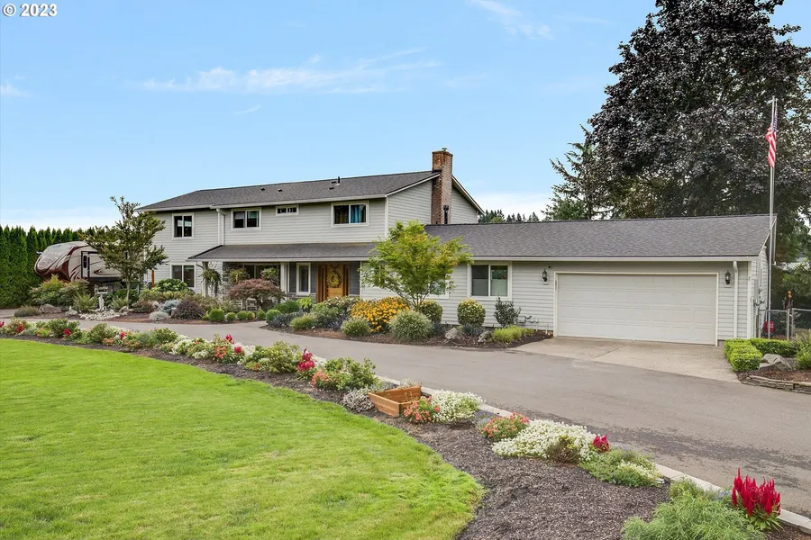One of a kind Farmhouse with one acre and easy access to I-5. Completely remodeled in 2019 with craftsman?s detail and added square footage. Home boasts two primary suites with walk in showers , free standing tubs and large walk-in closets. Custom kitchen with pot filler, large island with additional sink and 36 inch Wolf stove. Kitchen includes double ovens, microwave, pot-filler and top of the line appliances. Enjoy the front entrance with views of the backyard with in-ground heated pool and custom built bar boasting live edge wood built in grill, refrigerator, kegerator and ice maker. Living room has custom built-ins, wood stove and a magnificent wall of windows that open up to outdoor living with palm trees, fire pit and water features. Home is set up for multi-generational living to include a 1200 sq ft mother-in-law house with a separate septic system. A heated dream shop includes a mezzanine and two offices with air conditioning will be perfect for a home business or car enthusiast. The grounds are meticulously kept with sprinkler and drip systems to include electric lights in all the flower beds. One look and you?ll see that nothing was overlooked in this home.