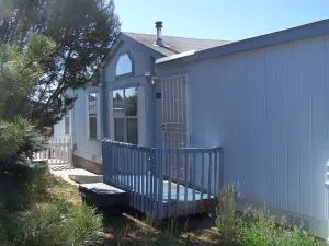 PRIDE OF OWNERSHIP-describes this attractive 3bedrom 2 bath M.F. home sitting on 1+ acre. Outside is a well manicured property with a large 780SQ'detached garage with a small shop area and sewing room. There is a circle drive with neatly trimmed trees front and back, 3 sheds and it is fenced on 3 sides. There is a small dog run, lovely spa sitting in a fenced in cement patio area and views of the surrounding mountain side. Inside is a nice kitchen dining room area,living room with views of the mountain to the south of the home and a comfortable functional split floor plan. The home has just been freshly painted and is ready for you to move. in!