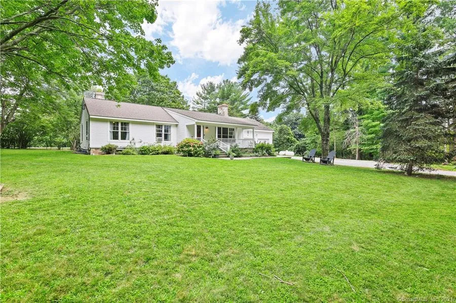 WESTON RESIDENTS CAN JOIN WESTPORT RECREATION FACILITIES INCLUDING COMPO BEACH! VIRTUAL TOUR AVAILABLE ON REQUEST. Located on a quiet cul de sac in highly desirable neighbored, this sun filled ranch offers an open concept floor plan, tranquil covered front porch and even an in-ground pool. Magnificent, level, park like property with fruit trees, a 15 x 15 barn & charming vine covered arbor to dine under. There are beautiful wood floors throughout the home & a stone fireplace in the living room. Updated crème colored kitchen cabinetry & stainless appliances including a WOLF 6 burner gas range. The beautifully sited, in ground, Gunite pool is currently not open, but has a less than three year old pump and filter. Additionally, 2012 updates include new siding, Anderson windows and a new roof in all areas except over the front portion of the garage. There is a wood burning back-up boiler and...