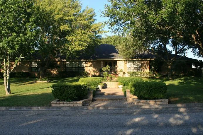 It is located on a corner lot and has a fenced backyard. As you walk up the walkway to the house you will pass a water fountain. Upon entering the foyer, you can go right and find a wing of bedrooms. There are two bedrooms that share a bath. These bedrooms are oversize with big beautiful windows. There is also a mother-in-law suite at the end of the hallway. There is a full bathroom with a large closet. An additional room down this hallway could be used as a bedroom/office.