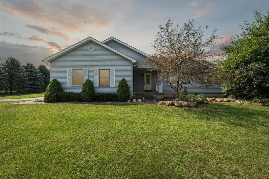 This beautifully updated ranch-style is nestled in a cul-de-sac on an acre with stunning views of farmland. Interior features include three spacious bedrooms, two and a half baths, featuring a newly remodeled primary bath (2024) and a convenient half bath in the finished basement (2024). The open and airy floor plan includes new carpet throughout (2024). The kitchen appliances were updated in 2020. First-floor laundry adds convenience to your daily routine. The covered front porch and the expansive deck are perfect for entertaining or relaxing. The two car attached garage with a brand new door (June 20204) provides ample storage and parking space. System upgrades include the HVAC system (2024), a new hot water tank (2020), and a new water softener (2021). The finished basement offers additional living space, ideal for a family room, home office, or recreation area. The attic is fully ins...