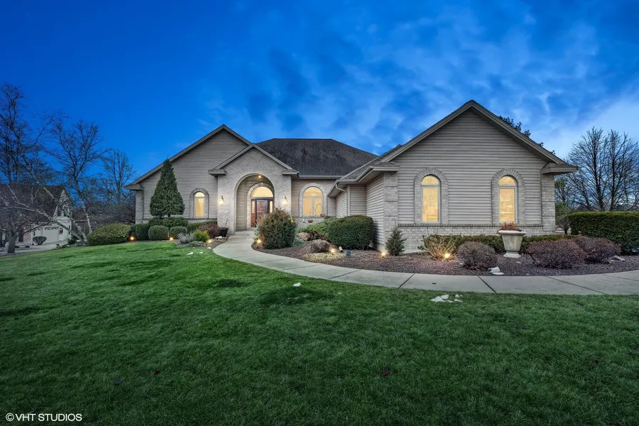 Seller relocating for work, will consider reasonable offers.Prepare to be impressed.Dramatic ranch home w/soaring ceilings & windows overlooking picturesque prof landscaped acre on cul-de-sac.Enter the foyer with columns to bright & airy living room w/fp.Formal din rm to accommodate huge gatherings.Enormous open kitchen,eating area & fam rm w/wall of windows offers rear yard views w/koi pond.Blinds electronically controlled.Master bdrm w/walk in closet, tray ceiling,luxury mstr bath,doors to deck.Split bdrm layout.1st flr bdrm or office.Full w/o bsmnt w/bed,bath,kitch,fp, exercise/bonus rm,3 season rm perfect for guest/in-law arrangement.New top of the line security system,flring,furnace,wtr htr.Low taxes!Prime location to IL,Lake Geneva,Milwaukee,easy access to tollway,main rds,airports