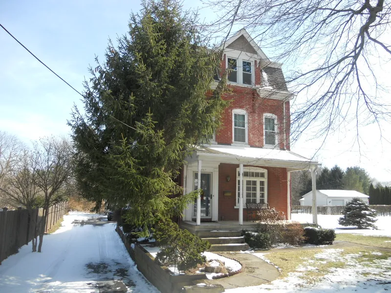 Large farm type home. All brick. 4 Bedrooms, 2.5 bathrooms. Large level lot. 1 acre + partially wooded. Many improvements. Includes new gas heat and c/a. New gas hot water heater. Recently coated rubber roofs, new garage roof + new garage doors. New microwave and dishwasher. Hardwood floors throughout. Built-in bookshelves, skylights, large side deck with roll out awning. Crown molding, Brazilian cherry floors in family room. Coal/wood stove in LR, some updated windows. Plenty of off street parking. All blinds and appliances remain, as is.