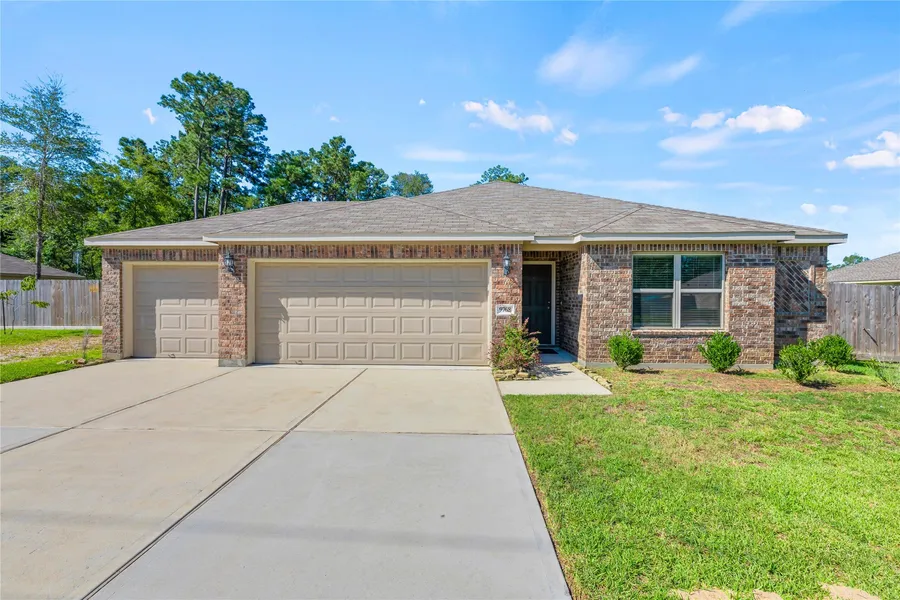 Discover charm and comfort in this beautifully crafted 1-story home by Rausch Coleman Homes, set on a sprawling 1-acre lot. This 4-bedroom, 2.5-bath residence boasts all-new paint and carpet, an open floor plan, granite countertops, and a spacious 3-car garage. Enjoy outdoor living on the expansive covered patio with serene views, perfect for relaxing or entertaining. The primary bathroom offers a luxurious escape with a separate shower, and a soaking tub. Additional highlights include an extended driveway, a gated yard for your furry friends, and a large carport ideal for storing an RV or boat. Back of the property is left untouched for your imagination or enjoy the natural woods.