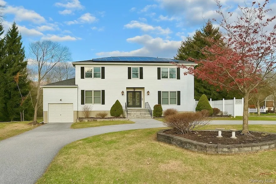 Welcome to 120 Pine Tree Road, a beautifully maintained Colonial in Monroe offering over 2,450 sq ft of comfortable living in the Monroe-Woodbury School District. This home features a sunken living room with hardwood floors, an elegant flow into the dining area, and marble flooring throughout the kitchen and dining room for a refined finish. The second level provides four generous bedrooms, including a spacious primary suite. Outside, the property sits on a level, park-like acre with an inground pool designed for summer enjoyment, mature landscaping, and a private backyard framed by evergreens. Additional highlights include an attached garage, covered front entry, and solar panels for added efficiency. A well-cared-for home in a highly desirable location, offering the space, setting, and amenities for today s lifestyle.