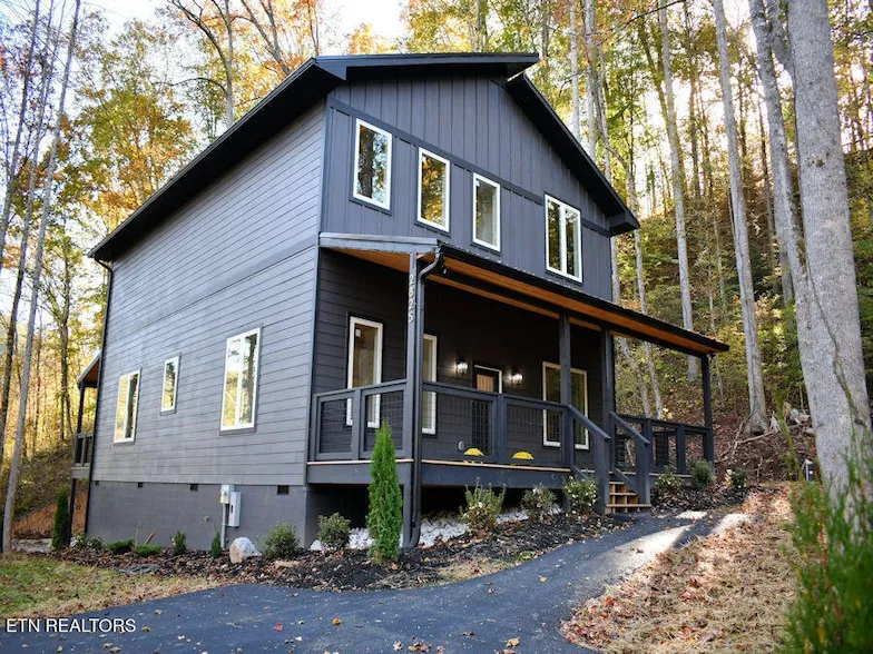 When you think of a cabin in the Smoky Mountains, do you think of a bunch of cabins sitting side by side so close to each other, you could reach out the window and knock on the cabin next door OR do you think of a secluded cabin nestled on an acre lot offering privacy in a peaceful setting? If the 2nd option sounds more inviting, let me introduce you to this ultra luxurious, brand new cabin situated on a secluded acre lot with mature shade trees. Boasting loads of upgrades including HardieBoard fiber cement siding and Anderson windows, this one is not your typical builder spec cabin, but more of a custom build. The full length covered front and back porches are the ideal setting for enjoying the peaceful sounds of nature and the whisper of a spring-fed creek in the distance. Unwind and spend your evening with friends and family enjoying smores in the secluded fire pit area. The outside l...