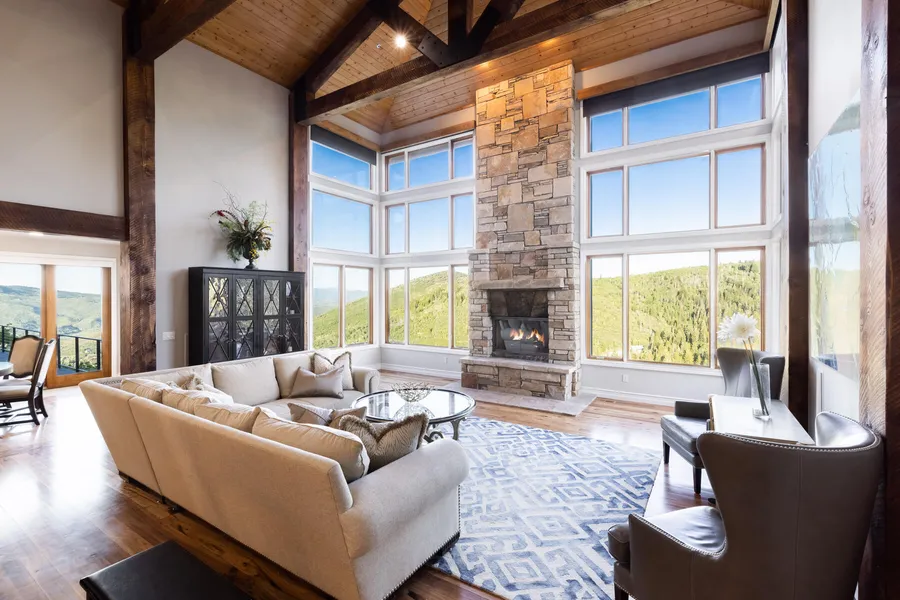 Located at the top of Pinebrook on a private cul-de-sac, this pristine, mountain transitional style home has 180 degree unobstructed mountain views of evergreens. Enter the wood & glass pivot door and you will be overwhelmed by the incredible 20 foot walls with floor to ceiling windows overlooking the view and a floor to ceiling stone fireplace. The kitchen is completely over the top, with the finest appliances and a white quartz waterfall island. Grow fresh herbs and greens in the greenhouse, located on one of the decks. Even the laundry room has incredible views and a granite waterfall countertop. The main level has two extraordinary master bedrooms, one with oxygen pumped in to prevent altitude sickness. The upstairs has 2 en suite bedrooms and a loft. Downstairs is every amenity your family and guests could desire: A wine room, dry sauna, gym, second kitchen, theater room, plus 3 bedrooms and 3 baths. Step outside to an outdoor kitchen, fire pit, and hot tub on a private deck overlooking the evergreens. This is a home you never have to leave! It's completely enchanting, with an open and airy floor plan and a flat driveway for easy living. Just steps away from the private Pinebrook trail system with miles of Park City's finest trails. Five minutes down the hill is Starbucks, groceries, restaurants and easy access to I-80 and Salt Lake City. This home has been meticulously upgraded and maintained. It is a truly unique opportunity to have it all at the top of the mountain!