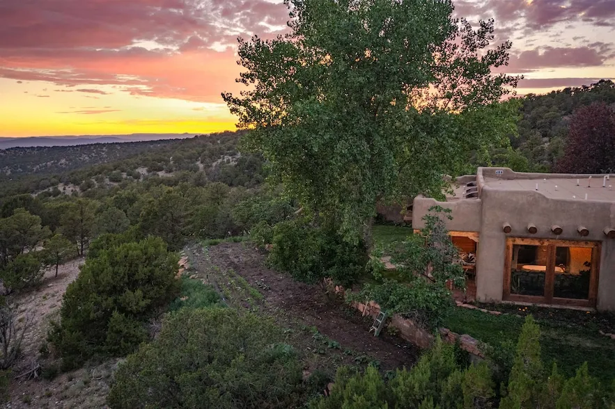 Luxurious & Sustainable High Desert Castle on the Valdez Hillside ~ Welcome to Winsor Castle, 3,300 sqft of pure magnificence pleasantly situated near Taos Ski Valley, just a short distance to Central Taos, with some of the most remarkable views in New Mexico. This exquisite and overbuilt residence inspired by the Mabel Dodge Luhan House is set on over one acre of lush pi on & juniper forest. To put it bluntly, the entire residence was overbuilt by the current and only owner, to his personal taste. Upon stepping into the solar passive residence powered by a net-metered solar system, you will encounter endless meticulousness amongst several hand-crafted and traditional custom features. High ceilings with impressive 10x10 Douglas fir vigas and tongue-and-groove accents that create an open, airy, and well lit atmosphere, complemented by recessed lighting. Special 6-sided Mexican Saltillo tile floors above radiant heated floors throughout the home, and travertine tile archways evoke a special Southwest feeling. Extending from the kitchen and living room into the primary bedroom you will encounter perhaps the home's most notable feature; a spectacular tropical greenhouse with 16' ceilings, surrounded by hand harvested quartzite grey stone walls. The primary ensuite is a true sanctuary, offering mountain views directly from the soaking tub through the banana trees in the greenhouse. With 4 spacious bedrooms, 2 bathrooms, and generous living areas, this residence offers a unique blend of comfort and eco-consciousness. Emser travertine tile and white marble floors grace the primary bathroom with a steam shower. At the heart of the home is a chef's kitchen with a Viking gas range, featuring stunning 2" teak and marble countertops, a New Orleans brick backsplash and a Tuscany-inspired mosaic behind the flame. As for the impressive R-Value of the home, these 16'' poured pumice-crete walls and double-studded interior walls, ensure complete climate control, along with no sound interruptions room-to-room. Furthermore, the 4'ft thick roof, insulated with blown cellulose bales, significantly enhances energy efficiency, and incredibly low utility bills. Outside, the property is an oasis. Terraced organic vegetable and flower gardens, and a variety of fruit and shade trees like apple and apricot, seasonal perennials such as echinacea, daisies, and sunflowers, all of which create a vibrant landscape, perfectly maintained by an 8-zone Rainbird irrigation system. Classic brick and flagstone portals around the home offer unbelievable views of the Valdez Valley, El Salto cliffs & majestic Taos Mountain, and especially so from the infrared or sauna during evening soaks in the hot tub overlooking these majestic vistas. Beyond the home's many special features, the location and convenience is equally impressive as it provides easy access to outdoor adventures, including hiking, biking, and trout fishing in the Arroyo Hondo River. The quaint village of Arroyo Seco is a mere 3 miles away, and offers delightful restaurants, shops, and entertainment. This luxurious, overbuilt, and truly special residence offers a unique and sustainable lifestyle amidst the unparalleled beauty of Northern New Mexico.