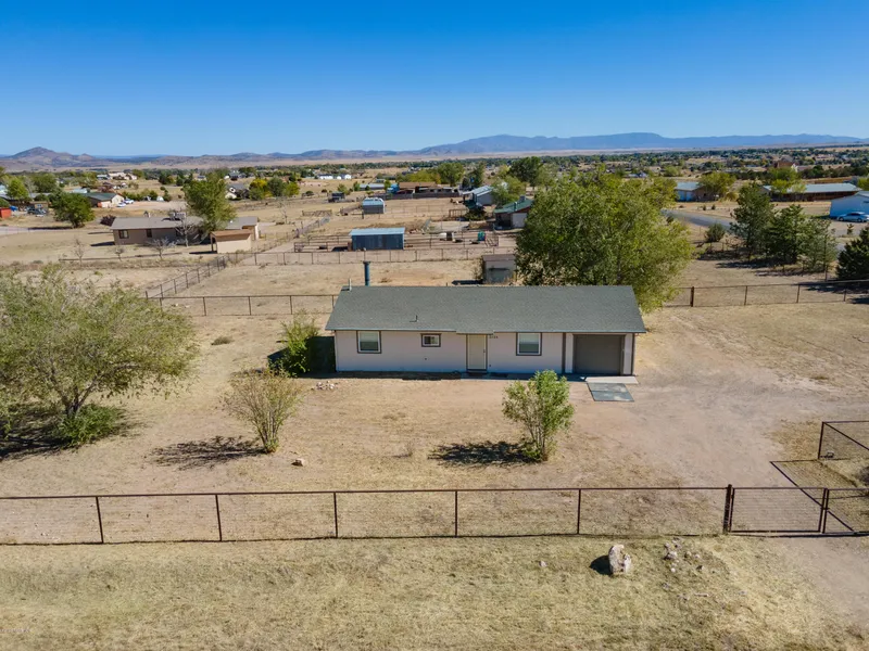 This horse property home sits in a beautiful neighborhood right off of a paved road with views of Granite Mountain and surrounting buttes. This wonderful home has so much to offer! 2 bedroom, 2 bathroom, tiled throughout, new carpet, shutters, new pipe fencing front and back, oversized hay shed, good producing well that was inspected in 2010 and pumped 10 gallons per minutes. 100% financing available. Come and make this beautiful home yours!