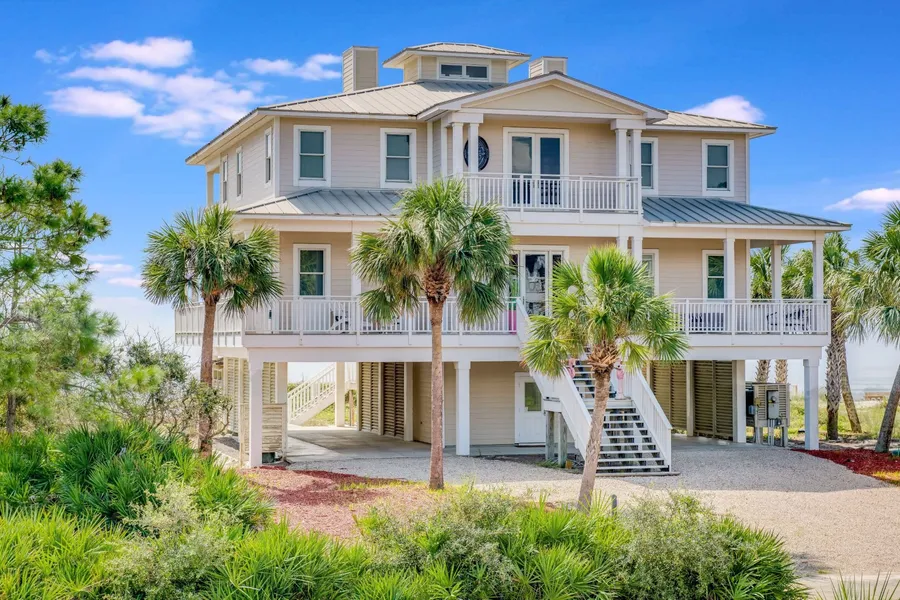 FURNISHED BY AN EXQUISITE AMAZING DECORATOR, ELEGANTLY AND ARCHITECTURAL DESIGNED FOR BEACHFRONT LIVING. THIS ONE OF A KIND UNIQUE HOME IS FULL OF LUXURY, HOME HAS NEVER RENTED. ELEVATOR TO ALL FLOORS, MASTER SUITE IS ON THE MAIN LEVEL ENJOY COOKING IN THIS BEAUTIFUL GOURMET KITCHEN, VIKING GAS STOVE, SUBZERO, WARMING TRAY, WINE COOLER ICE MAKER. ENJOY THE SECURITY OF THE GATED COMMUNITY, WITH 2 POOLS, WORK OUT CENTER, PICKLEBALL ,TENNIS COURTS, AIR STRIP AND BIKE PATHS THERE IS SO MANY EXTRA'S WITH BREATHTAKING VIEWS OF THE GULF.