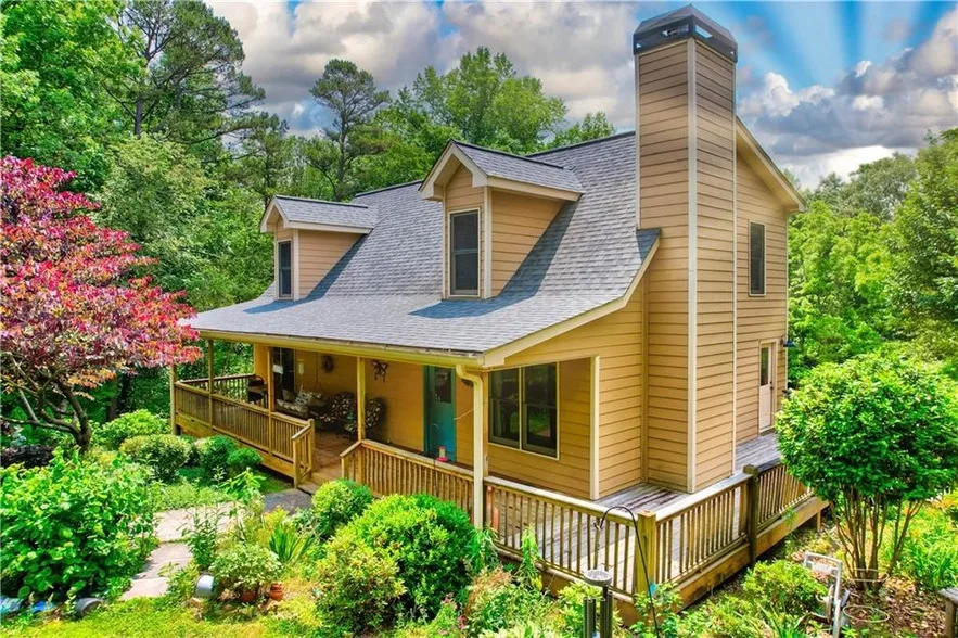 Amazing cozy 3BR/2.5 BA in Hightower Overlook! This gated community is nestled in the North Georgia mountains just .2 miles from Monetluce Winery and only 6 short miles to the center of Dahlonega, this quaint retreat awaits you to call it home! Perfect oversized front porch leads into a two-story living room featuring a custom stone fireplace that currently has a functional gas stove and hardwood floors. Large open kitchen features granite counter tops, ample cabinetry, stainless steel appliances and views to the back yard. Just down the hall is a full laundry room with sink and counter, leading into an oversized primary bedroom with a sitting area and walk-in closet. The primary bath features a whirlpool tub and a separate shower. Both large bedrooms upstairs on each side are private with walk-in closets. Unfinished basement with 1 car garage, stubbed for a bathroom and tons of room for expansion make this home ideal! Recent upgrades include NEW roof, NEW Hardi-Plank siding, NEW Trane HVAC system and NEW hot water heater! All kitchen appliances are new except the refrigerator. This home sits on one of the largest lots in the neighborhood with plush landscaping and amazing yard with unlimited possibilities! Move-in ready, don't miss this one!!!