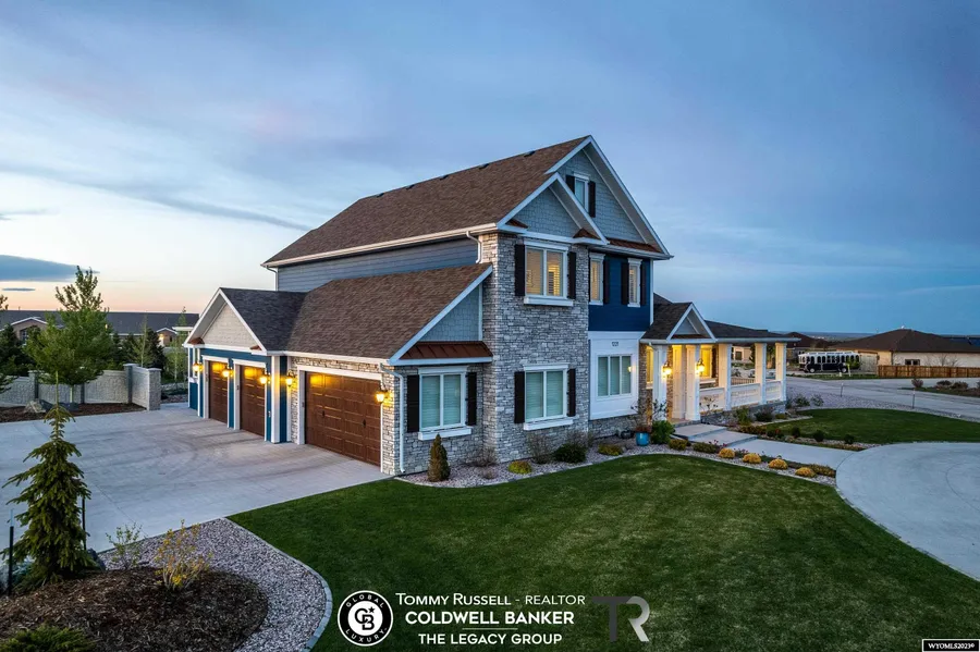 Experience luxury living in at 1221 Morado Drive, an exquisite 6,500 ± square foot home situated on a beautifully landscaped one-acre estate lot. Enjoy stunning views of Casper Mountain from the wrap-around porch. Entertain guests in the kitchen and dining space featuring Wolf appliances, coffered ceilings, custom trim inlays, tiled showers and walk-in. Relax in the main level primary suite with a 5-piece bathroom, clawfoot tub, tiled shower with floor-to-ceiling glass doors, and laundry facilities.