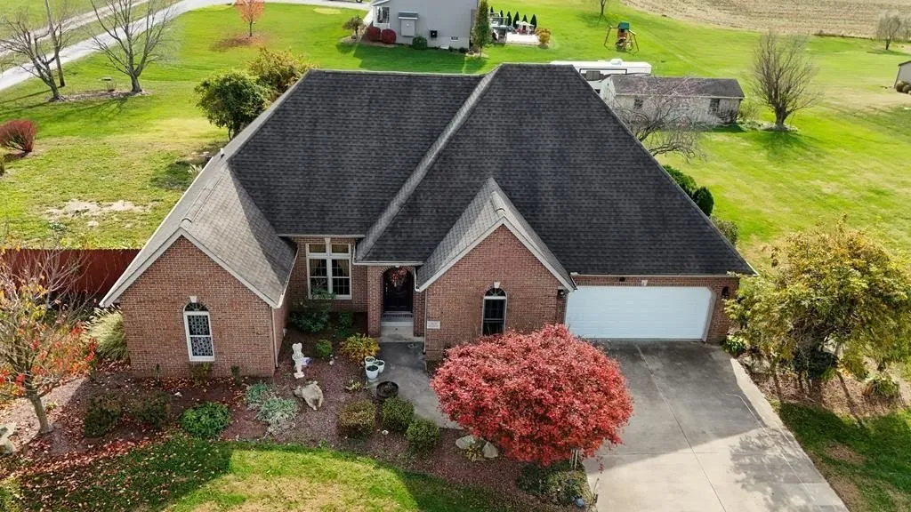 Single story brick home in a great rural neighborhood! The open floor plan living room, kitchen, and dining area make this home a great space for entertaining! The living room features a fireplace w/ gas logs, vaulted ceiling, & French doors to the rear patio area. 2 bedrooms and a full bath are on one side of the home while the owner's suite is found on the opposite side. The owner's suite has French doors to the patio, bath w/ walk-in shower, & a walk-in closet. A den is located off the entry that could be used as an office or formal dining room. There is a 2-car attached garage w/ pull downstairs to an attic storage space as well as a separate outdoor storage shed. An outdoor fireplace under a vine covered seating area is a great place to relax! The flat one-acre lot provides plenty of area to create the exterior features of your dreams! With so much to offer, you really must see this home for yourself!