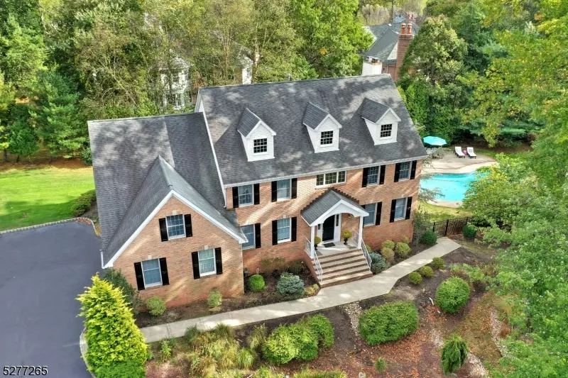 Set at the end of a coveted cul-de-sac on 1 acre of professionally landscaped park-like property, this stately 5 bedroom, 4 full bath brick-front colonial is a true oasis. Enjoy gorgeous hardwood floors, spacious rooms, open flow, many recent updates, abundant windows & ample storage throughout. Grand entrance foyer opens to the formal dining rm. or sun-filled living rm. Recently updated eat-in kitchen features top-notch stainless steel appliances, 2 ovens, quartz counter-tops, breakfast bar, abundant cabinetry, pantry & separate eating area w/ sliding glass doors out to a private paver patio & fenced back yard. Spacious family rm. is open to the kitchen & offers walls of windows, built-in shelves & wood-burning fireplace. A 5th bedroom or home office, updated full bath & mud room w/direct access to the attached 3-car garage complete the first level. Second floor private spaces include 3 more sizeable bedrooms, updated full hall bath w/double sinks & laundry room. Luxurious primary bedroom suite includes an expansive custom walk-in closet, private sitting rm. or home office & vast spa-like updated full bath w/jetted tub, double vanity, glass enclosed shower, vaulted ceiling & skylight. Fabulous finished basement hosts, game & recreation rms. a 4th full bath, utility & storage areas. Heated in-ground pool & designated fire-pit area make this special home ideal for daily living, outdoor enjoyment & year-round entertaining. Close to Franklin School, town & NYC transportation.