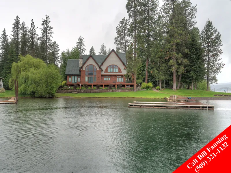 Coeur d'Alene Lake, Driftwood Point, 160' frontage, 4+ Bdrms, 4 baths, 4600 sq ft Custom Home, 2 car garage, extensively landscaped w/waterfall and pond. Gourmet kitchen, hardwood floors, well, lawn to waters edge, bonus room above garage, boat dock. Fire pit at waters edge. Amazing views.