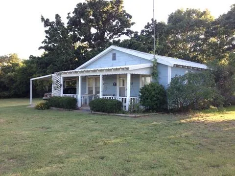 This lovely & clean 2 bedroom, 2 bath home sits on 1.046 acres. The house has built-in bookcases in the spacious living room and plenty of cabinet space in the kitchen. There is a claw-foot tub in one bathroom and a tub/shower combo in the other. This home has central heat & air and is supplied by a water well. There are large post oak and red oak trees around the house, providing great shade and pecan, peach, cottonwood, and crepe myrtles out in the huge yard. There is a fenced garden area where owner says they grew some great vegetables. This would be a wonderful starter home for a family or a great place to retire and just relax on the porch in the shade.
