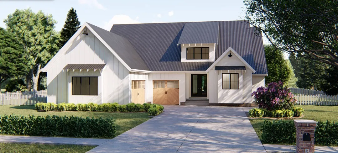 To live in Hyde Park is a dream many people have; to live there in a fully custom stunning home from Parade of Homes builder Duke Building Co is even more desirable! This beautifully configured farmhouse plan offers amenities that are usually found in much larger home designs. On the outside, board and batten siding and a covered porch put on a striking display of curb appeal. Just inside, you'll be amazed at the open floor plan including a magnificent great room, which is warmed by a fireplace and flows into a dining room and large kitchen. The kitchen boasts plenty of counter space in addition to the spacious island. Just beyond the dining area, a covered porch extends entertaining options. The master suite enjoys a luxurious bath, complete with compartmentalized toilet, walk-in shower, dual vanities, and a large walk-in closet. On the other side of this house plan, the large 3 car garage accesses the home through a convenient mud room complete with a bench, lockers, and a catch-all.