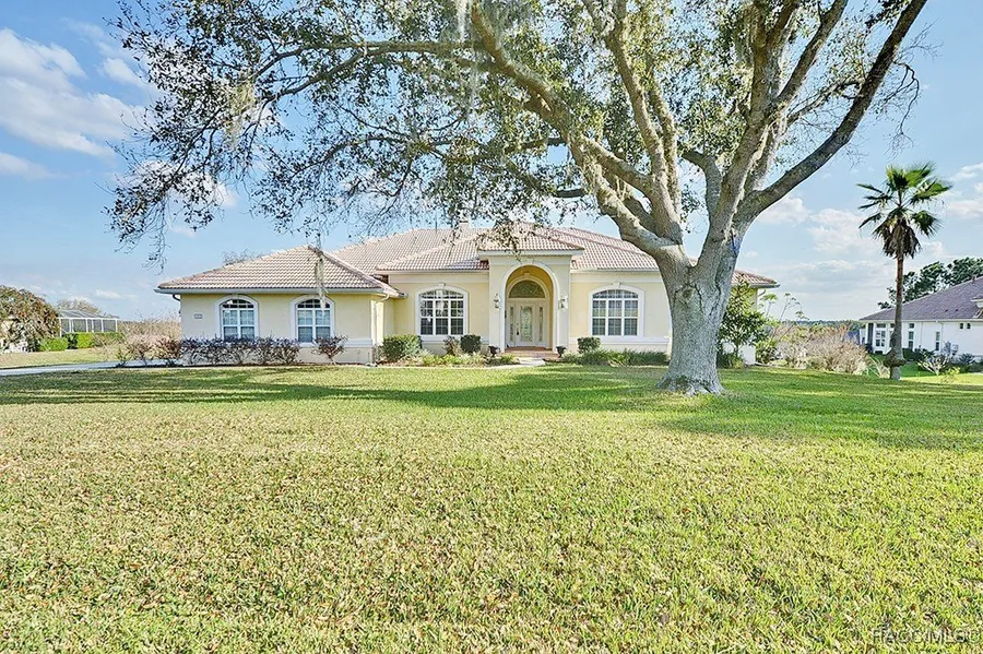 Experience luxury living in Terra Vista, featuring world-class resort-style amenities. This stunning 3-bedroom, 2 full & 2 half-bath home offers 2,938 sq. ft. of beautifully designed living space. The home offers an open-concept layout, elegant tray ceilings, and a gourmet kitchen equipped with a breakfast bar and casual dining nook. The main suite opens to a screened lanai and patio, offering a tranquil retreat with His & Hers walk-in closets and a spa-like master bath featuring a double vanity, jetted tub, and oversized walk-in shower. The home features a split floor plan, with two guest bedrooms sharing a modern bath with a tub/shower combo. Additional features include indoor laundry room with washer & dryer, a spacious 2-car garage and electric bill savings with solar panels that are paid off. Located in Terra Vista, this home includes a social membership, providing access to championship golf courses, a fitness center, tennis courts, pools, dining, and a vibrant clubhouse-everything you need for the ultimate Florida luxury lifestyle!