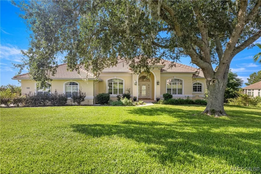 One or more photo(s) has been virtually staged. Elevated Luxury Living in Terra Vista - at 152 ft above Sea Level with beautiful Southern Exposure Views! Take advantage of this expansive single-level home, perfectly positioned on a prime full-acre homesite featuring world class resort style amenities in the gate community of Terra Vista in Citrus Hills. With owned (not leased) solar panels, you ll enjoy energy savings while living in style. Homesite has room for a pool as large as you can imagine! Walk through the fused Glassed into this beautiful home and enjoy the natural sunlight that will greet you. Spanning nearly 3,000 square feet, this home offers 3 bedrooms, 2 full baths, and 2 half baths in a thoughtfully designed split floor plan perfect for hosting guests while preserving privacy. Master bath has jetted tub, oversized walk-in shower with ample closet space that leads to a spacious Master bedroom making sleeping and relaxing special. On the opposite side of the home, two guest bedrooms share a bath with a tub/shower combo and enjoy their own private wing. The Expansive Kitchen features a built-in double oven, breakfast bar, and upgraded granite island. An open-concept great room showcases full-wall sliding doors that disappear completely, letting the natural lighting grace the room, and blending the Tray ceiling living area with the lanai for seamless indoor/outdoor living. Enjoy the Elevated Oval Shaped outside Veranda large enough for entertaining while soaking up the Sun! Additional highlights include a cozy fireplace, a laundry room with washer & dryer, and a spacious 2-car garage. Living in Terra Vista means more than just a beautiful home You will make friends enjoying the 3 championship golf courses, pickleball, bacci, dancing at the Tiki Bar, tennis courts, resort-style pools, Full Service Spa, a fitness center with classes, multiple restaurants, Dog Park and a vibrant clubhouse.