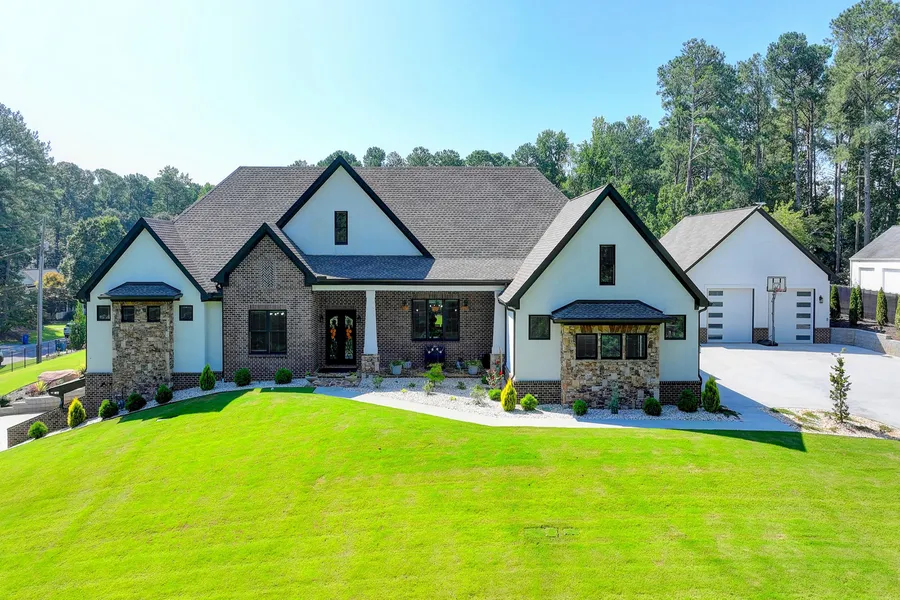 Welcome to this state-of-the-art masterpiece that boasts impeccable design on over an acre of land. Set behind private gates, this immaculate residence features more than 4,000. of living space, 4 large en-suite bedrooms, (two master bedrooms) four full baths, exquisite executive office, 6 car spacious garages or can be a large gym, or an extra living space as it's complete with a separate electric panel. Ideal for an added in law suite or guest home. Upon arrival, you will be greeted by meticulously landscaped surroundings, a striking grand iron door, and gorgeous entrance foyer that sets the tone for the residence . No expense was spared in this refined custom estate with premium finishes throughout, including Schluter heated floors in the kitchen, dining area, and master bathroom. Upon entering the natural lite home, the hardwood floors complement the 12' wood beam ceilings, and well designed floor to ceiling designed floor open floor plan. The gourmet chef's kitchen is fitted with state-of-the-art appliances, including an induction stove, two sizeable, quartz kitchen counter tops and islands, a butler’s pantry, and a convenient prep kitchen. The custom made cabinets share the elegance of the waterfall tiled wall making this a dream kitchen. The principal suite occupies its own with luxury finishes and lavish master bath design and boutique-style walk-in closet, walk in zero level shower with a heated seat, and gorgeous soaking tub as the ambiance of the fireplace blends in with the luxury design throughout. Conveniently located on the main level is the large laundry room with ample storage. The terrace level is unfinished for your desired plans. Bathroom and bedroom ready to be built. The backyard is flat and pool ready. With an outdoor kitchen and cozy fireplace, the possibilities are endless as the drip system, cedar raised bed will have you picking fresh vegetables from your own farm to table cooking. Welcome home!