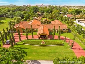 This exclusive estate is located in the most desirable area of Horse Country. The property features 7 bedrooms and 5 full bathrooms (one bathroom was recently remodeled), a library, a music room, a spectacular gourmet eat-in kitchen with many extras, a gas generator that covers the whole house and impacts windows and doors. This estate has an in-law quarter with 2 bedrooms one bath and also a separate guest house which is being used as a chapel and it could be easily converted into a guest house. There are also 3 horse stables, not in use at this time. Open space living room opens into one of the terraces with a beautiful wet bar. An additional terrace overlooks a stunning swimming pool surrounded by a lush landscaping; a covered gazebo/BBQ provides a great area for entertainment