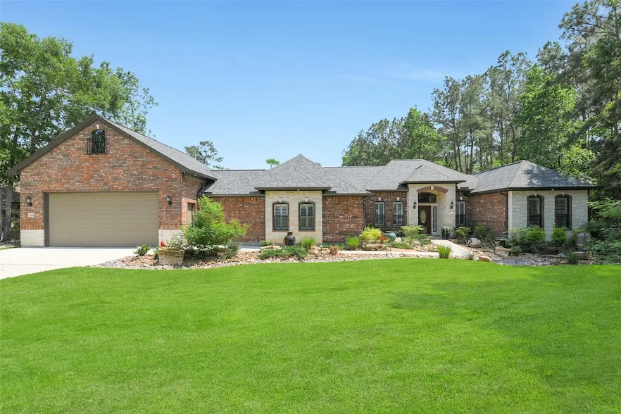 One of a kind custom home with all the bells and whistles! Located in a quiet gated community minutes from Lake Conroe and short drive to Woodforest. Close to shopping, medical and dining. Home features a HUGE custom built, epoxy floored garage, custom landscaping and lighting, updated roof, 3 bedrooms, Study w/french doors, Media/Gameroom, MUD room, walk in laundry room, several outdoor living spaces including a stunning outdoor firepit area with a custom built "man cave," Large pool, 2 covered patio areas with one that has remote controlled screen doors. Primary bath is a dream! HUGE walk in custom shower with dual heads, freestanding Copper Garden Tub, HIS/HER sinks, with significant storage and a separate make-up vanity area with a lit mirror, custom built closet with huge island featuring a lot of pull out drawers, drop down racks and dual wall cabinets. Home has updated lighting, P...
