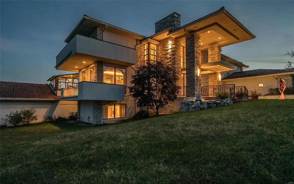 PRICED TO SELL! One of the most substantial homes you can buy under $2,000,000! This legendary significant landmark provides an opportunity to acquire one of Creve Coeur's largest & most exclusive properties. Stunning breathtaking views of the ~26 acre lake from all 3 levels of the home ~6.9 acres of adjoining common ground/tennis court. 6 total bedrooms, total 6 full& two 1/2 baths, ~8496 sq ft. Sumptuous appointments: expansive walls of glass flood nearly every room with natural light, 2 story great room, marvelous bedrooms-retreat-like master suite with stone fireplace/office-study & balcony, downstairs recreation room/fitness center & ~1800 bottle wine cellar/bank vault. The centerpiece is a~1728 sq ft-indoor resort style pool, waterfall, fountains & spa. 5 car heated garage. 1 acre lot, stone interior walls & fireplaces-2 stone+1 marble, marble floors, elevator, terraces/balconies, au pair suite/ kitchen, enclosed porch, huge paver driveway, fish pond, magnificent clay tile roof.