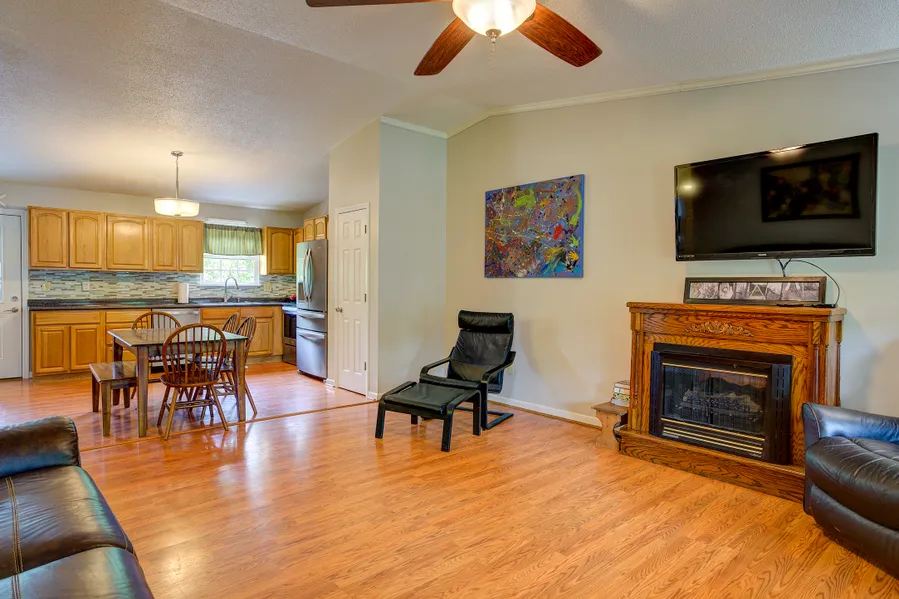 This move in ready home is in a very conveniently located area between Johnson City and Erwin and minutes from I-26 and the Tinker Rd. Walmart. As you enter this lovely home from your covered 8 x 40 rocking chair front porch you will find Cathedral ceilings in the great room that opens to an impressive and roomy eat in kitchen. the main level also includes the Master bedroom with double closets and master bathroom. There is another large bedroom with double closets and a full bathroom with Cathedral ceilings that opens from the hallway or the 2nd bedroom. The lower level has so much to offer. You will find 2 more bedrooms, huge laundry room, den/ recreational room and a 2nd kitchen. this would be ideal if you needed a Mother's in-law quarters. Outside is so awesome, you have a privacy fence, fenced in back yard and an above ground swimming pool, 24 x 26 storage building with electricity that would be perfect for a workshop. There is also an additional building with a front porch and electricity. The front portion of this one is used as a pool house and the back portion is used to store lawn equipment etc. There is an abundance of space to park an RV, boat or additional vehicles. All of this on 1.06 acres which is level as well as beautiful and offers a very gentle slope in the back yard which has approximately 50 blue berry bushes, black berries, and muscadine grape vines. LOWER-LEVEL FRIDGE & FREEZER DO NOT CONVEY. Buyer/ Buyer's agent to verify all information.