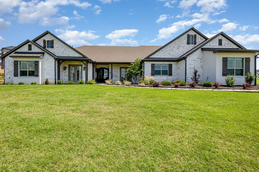 Experience refined elegance upon entering through the exquisite beveled glass front doors, where you will be greeted by a herringbone brick floor and a distinctive barrel ceiling. Thoughtfully designed by the architect-owner, this home showcases high-end finishes throughout. The home has an open floor plan, featuring a formal living area and dining room with a lighted built in hutch. The expansive kitchen, marked by a custom copper exhaust hood, offers ample charm, along with the decorative tile backsplash, stainless steel appliances, gas cooktop and a farmhouse sink. A large island in the kitchen serves as a perfect venue for family gatherings, connecting fluidly with the family room, defined by a beamed vaulted ceiling and a double sided fireplace, along side a sunroom filled with natural light. The primary bedroom features an elegantly appointed ensuite marble bath complete with a separate tub and shower. Two bedrooms share a full bath while the split bedroom incorporates an additional bathroom, offering flexibility as an office or mother in-law suite. The laundry boast built-ins with a sink. There is a 3 car garage. Notably the attic has energy efficient spray foam insulation on the rafters. Additional features include a tankless hot water heater. The expansive lot backs to a private pond, exclusive to the neighborhood presenting a unique opportunity to own this residence within a desirable gated community. Per the seller, both Aubrey and Cross Roads Tx are acceptable for use as the mailing address.