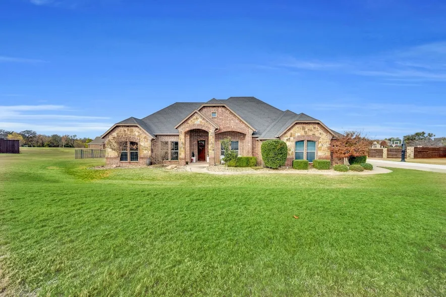 Situated on a premium pond-backing lot, this beautifully maintained custom home offers the perfect blend of refined living and resort-style outdoor enjoyment. From the moment you arrive, the striking stone and brick elevation, manicured landscaping, and inviting front entry set the tone for the quality found throughout. Inside, the open and thoughtfully designed floor plan is filled with natural light and timeless finishes. The heart of the home features a spacious living area that flows seamlessly into the kitchen, making it ideal for both everyday living and entertaining. The kitchen showcases custom cabinetry, generous counter space, and an oversized island that anchors the space and invites gathering. The primary suite is a true retreat, offering peaceful views and a spa-inspired bathroom complete with a freestanding soaking tub, luxurious walk-in shower, elegant tilework, and design...