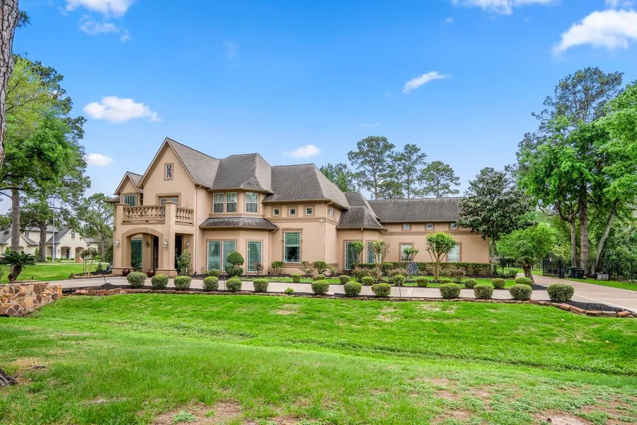 Elegant home on over an acre in sought-after Estates section of Gleannloch Farms, gorgeous landscaping with towering trees & circular driveway, beautiful stucco elevation, double leaded entry doors. 2-story foyer, spiral staircase, custom lighting, formal dining, hardwoods throughout. French doors to study with built-ins, den with wall of windows overlooking beautiful backyard, dual sided cast stone fireplace, huge open concept kitchen, large island featuring a 5-burner gas range, stainless steel appliances, beautiful cabinetry. Spacious primary room with bay windows, en-suite bathroom has whirlpool tub, walk-in shower with dual heads, dual vanities, custom mirrors. Upstairs gameroom; PLUS an amazing media room, 4 spacious bedrooms. Large outside covered patio with surround sound, outdoor kitchen, sparkling pool & spa with huge yard. Private gate with extra parking in the back. 3-car ove...