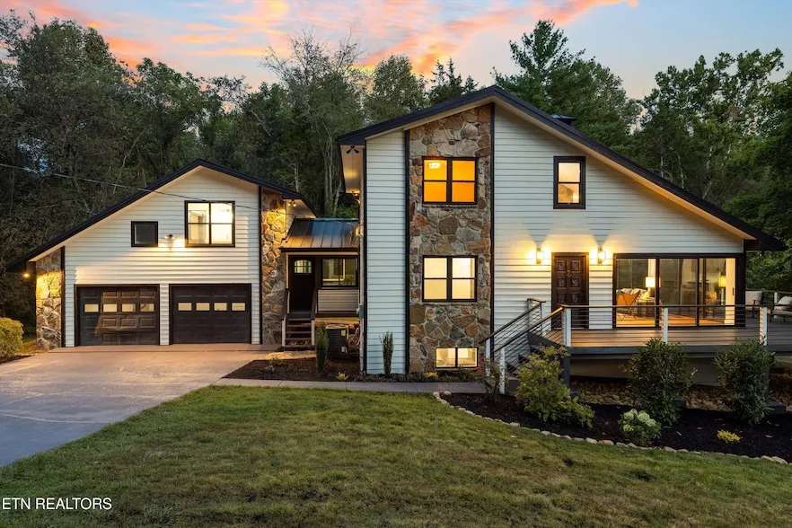 Welcome to your dream home in Lenoir City! This completely remodeled luxury property sits on a sprawling 1-acre lot, offering ultimate privacy while being just moments from the serene beauty of the lake. Every inch of this home has been meticulously crafted with custom, high-end finishes, blending modern sophistication with timeless elegance. The exterior boasts stunning curb appeal with a contemporary design, large windows, and a spacious two-car garage. Step inside to discover a bright, open-concept living space, perfect for both entertaining and relaxing. The gourmet kitchen features top-of-the-line appliances, quartz countertops, and custom cabinetry, ideal for the home chef. The primary suite is a true sanctuary, complete with a spa-like ensuite and ample closet space. Outside, you'll enjoy the tranquility of your expansive property, surrounded by nature with no neighbors in sight. Whether you're relaxing on the deck, hosting a gathering, or exploring the nearby lake, this home offers the perfect blend of luxury living and natural beauty. Don't miss your chance to own this one-of-a-kind masterpiece in Lenoir City your private oasis awaits! More... Updates to the home include; Oak flooring throughout, Dixie Kitchen Cabinets, Quartz Countertops, Stainless Steel Appliances, White Oak Railing, Delta Fixtures in every bathroom, Calcutta Marble in bathrooms, Solid Wood Doors throughout, Custom Made Rattan Vanities, Custom Metal - Black Ore - 24 Gauge Roof - 2024, R29 Insulation, Cedar Siding, All Bathrooms have been Waterproofed with Schluter, Four Seasons Sunroom with heating and air