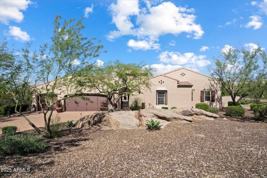 Nestled on a private acre at the end of a tranquil cul-de-sac in the gated enclave of Sierra Boulders, this standout luxury residence delivers both total privacy & panoramic Sonoran-desert views. The home sits behind mature landscaping & thoughtfully placed boulders that frame the natural surroundings. The bright, open floor plan is anchored by a gourmet chef's kitchen showcasing a large granite island, Stone Creek, custom cabinetry, & premium appliances including a Wolf gas range & appliances, Spacious family room & the great room opens seamlessly to an expansive covered patio where the views create a dramatic backdrop for indoor-outdoor living. With its elite craftsmanship, sweeping vistas & serene setting, this home embodies desert elegance & the essence of upscale Scottsdale living.
