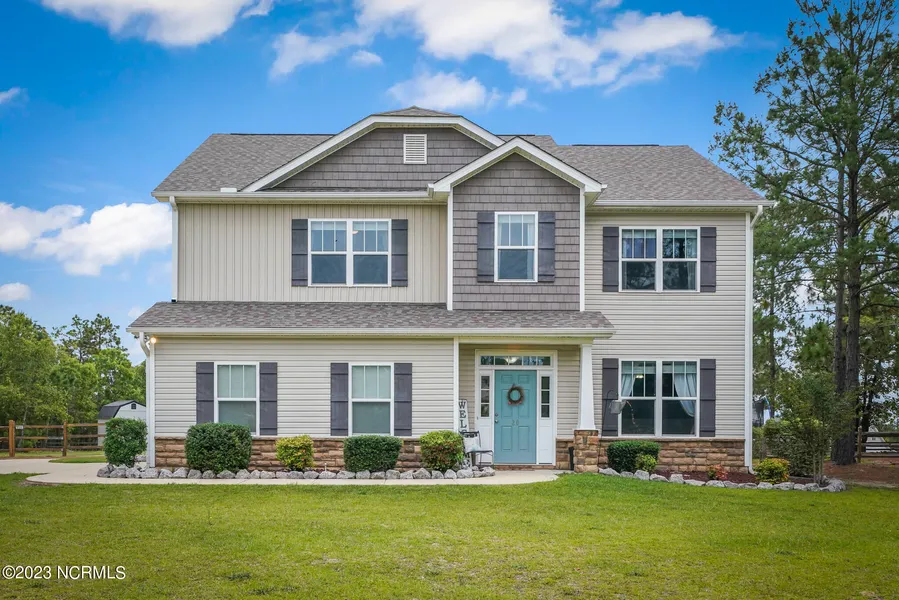 Just in time for summer- this 4BR home on an acre of land with a pool and outdoor fireplace and stone grill is ready for new owners! Fully fenced back yard! Less than 10 years old, this 2 story house has all of the bedrooms upstairs, an open living room/kitchen space with gas fireplace. There is an office/den when you first walk in that could serve as another bedroom, home gym or home office. Sellers added the pool , a shed, and loads of landscaping. The flooring has also been updated including new carpeting upstairs. Kitchen cabinets are painted and new tile in laundry room. 125 gallon propane tank is plumbed for fireplace and outdoor grill. All appliances will convey if buyer is interested. They will even leave the firewood! Septic was just pumped in 2022- termite bond with Canady's and propane tank owned by homeowner and serviced with McNeill.