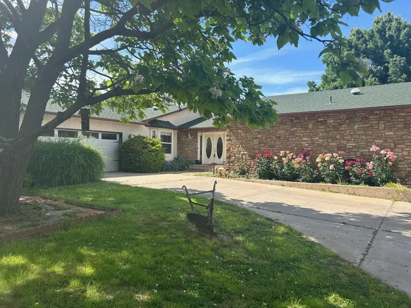 Situated on over an acre of land, this property boasts a park-like setting with over 55 trees, including apricot, cherry, peach, and pomegranate, to name a few.