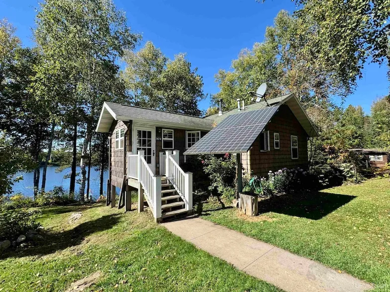 Experience true Northwoods living with this beautifully crafted 2-bedroom, 2-bathroom home set on 1.08 acres with 150 feet of frontage on scenic Deer Lake. Designed for both comfort and sustainability, the property runs on solar power and is equipped with a drilled well, septic system, and a brand-new Kohler backup generator making it ideally suited for year-round off-grid living. Inside, enjoy panoramic views of the lake from open living spaces, with a walkout basement providing additional finished space and easy access to the outdoors. A detached 2-car garage adds convenience, while the hobby farm setup featuring roaming chickens, honey bees, grape vines, pear trees, raspberry bushes, and more offers a perfect touch of self-sufficiency. Whether you re seeking a peaceful retreat or a year-round residence, this property blends natural beauty with modern amenities in a serene setting righ...