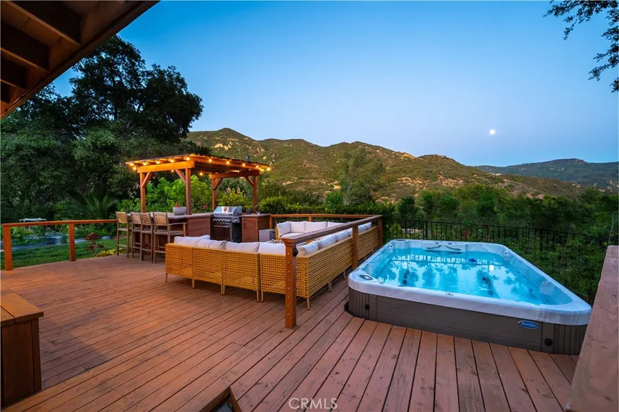 Discover a one of a kind creative sanctuary in the serene Calabasas Mountains offering a rare blend of privacy, versatility, and soulful living. This retreat features a beautifully updated four bedroom, three bath main residence complemented by a detached ADU perfect for guests, extended family, rental income, or a home studio. Inside, the open concept floor plan is filled with natural light and designed for seamless indoor outdoor living, creating an ideal environment for family gatherings, entertaining, or quiet relaxation. Step outside to enjoy a sparkling saltwater pool, cold plunge, and mineral rich swim spa, all surrounded by lush landscaping and mountain views. Over the past two years, the entire property has been thoughtfully transformed with thousands of plants into enchanting meditation gardens, meandering fruit tree paths, and a natural amphitheater designed for family events ...