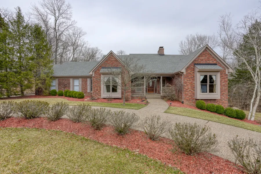 Pool season is almost here so be ready to enjoy it with this spacious walkout ranch with inviting In-Ground Pool. This home is in the popular established Oldham County neighborhood of Briar Hill Estates on a private cul-de-sac lot. You will find everything you need for first floor living here including a welcoming front porch and expansive deck overlooking the pool and landscaped backyard. The home has a rare and very desirable split bedroom floor plan with the primary bedroom and bath on one side and 3 bedrooms and 2 full baths on the other side. The first floor also has a vaulted great room with a fireplace, built-ins, wet bar, ceiling fan and doors with transoms that lead you to the year round sunroom. The Sunroom gets plenty of natural light through the wall of windows and door that lead to the deck. There is room for the cooks of the family and to entertain guests in the thoughtfully designed eat-in kitchen. The kitchen has a new dishwasher and microwave, double ovens, a planning desk and access to the deck. The dining room is elegant with picture window moldings and an inlay trey ceiling. The large primary bedroom has a walk in closet, ensuite bath and also has access to the deck. One of the 3 bedrooms on the other side has a wall of built in shelves making it a great option for an office. Also, to accommodate your individual needs is the spacious finished walk-out lower-lever that provides an additional bedroom, full bath, bar, fireplace and multiple entertaining areas. Need more garage space, or a nice workshop? Then, look no more because this home has what you need. The stand alone building was designed as a workshop but also provides many other options such as additional garage space, home gym, studio, etc. The pride of ownership is evident in this home with new roof in 2019, new A/C compressor approximately 2017, chimney tuckpointed in 2019/2020, exterior painted in 2019, and new pool liner in 2021. Immediate occupancy.