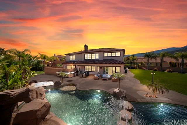 View Video Tour:https://vimeo.com/402383159. Welcome to The Retreat, the most prestigious gated community in Corona. This expansive residence is located in the Estates Collection on a premier lot. The gated courtyard entry opens to a beautiful entry foyer. The customized interior includes built in cabinetry, wood beam ceilings, plantation shutters, wood floors, intercom system, and two laundry rooms. The open floorplan allows for every entertaining enthusiast, gracefully transitioning from the kitchen to dining room to the great room with doors opening to the backyard allowing indoor/outdoor living at its best. The gourmet kitchen features top of the line appliances, granite counters, walk-in pantry, center island, two sinks, and butlers pantry. The spacious main floor master suite includes a fireplace, private patio with fountain and spa. The luxurious master bath features two sinks, vanity, soaking tub, walk in shower, and large walk-in closet. Upstairs includes a large bonus room, office, five en-suite bedrooms, one set up as a movie theater with projector screen and seating. With more than one acre of private grounds your thoughtfully designed lot offers a spectacular cascading saltwater pool and spa, 2 waterfall grottos, 2 water slides, built-in BBQ, multiple seating areas, stone fireplace, expansive lawns, lush landscaping and a fenced area for your dogs. Captivating mountain views, this luxurious home is close to shopping, golf courses, freeways and schools.