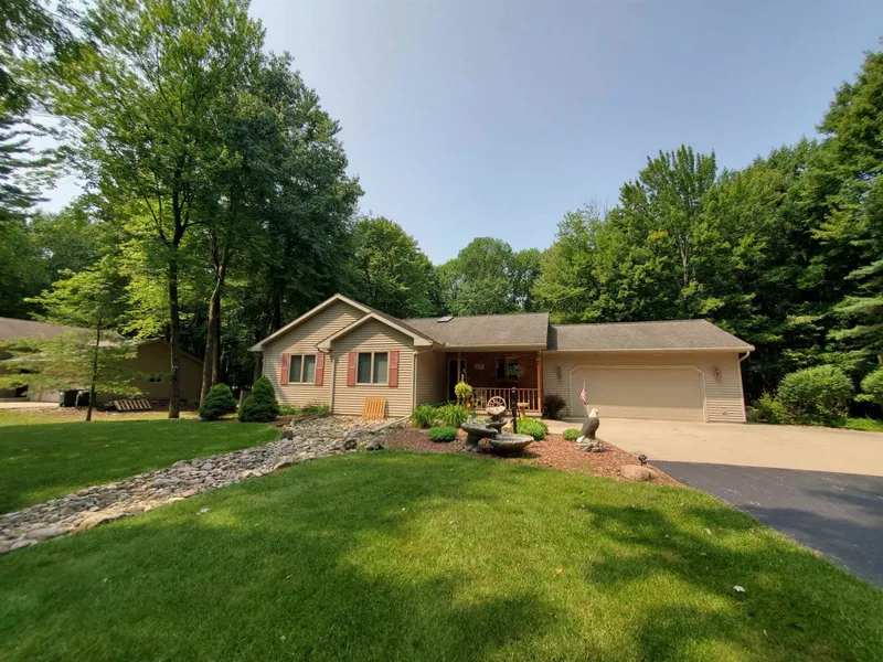 Dressed to Impress - Neatly tucked away in Shawano's most sought premier subdivision. Boasting an open concept floor plan with 4 bedrooms, 3 full baths, quality constructed ranch on nicely wooded lot. Home offers kitchen island, cathedral ceilings, gas fireplace, patio door to deck, primary bedroom with walk-in closet, whirlpool tub and separate shower en suite. Lower level offers family room with personal bar area, exercise or office room, laundry and ideal storage areas. While outside enjoy the professional landscaping while either under the covered 8'x24 patio or the 14'x24' deck keeping the sun at bay under the double awning. You are always protected from power outages with back up Generac generator. Additional 12' x 24' storage garage also provides an ideal workshop.