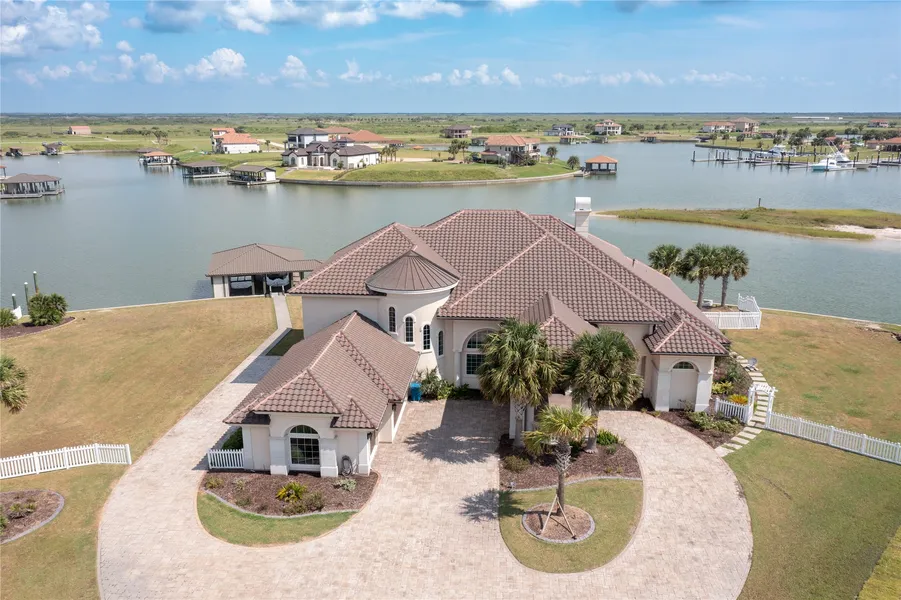 Located on the tranquil shores of the gated community of The Sanctuary just outside of Port O'Connor, this expansive 6,053 sqft waterfront home offers a perfect blend of luxury, comfort and natural beauty. Set across two spacious lots and equipped with a covered boat lift for two boats, this property embodies the essence of refined coastal living. Upon entering you will be greeted by the elegant, formal living area with a custom fireplace, a wet bar and floor-to-ceiling windows overlooking the meticulously manicured landscape and infinity pool. The Primary Suite is a peaceful haven, featuring panoramic water views, a large walk-in closet and a spa-like ensuite bathroom where you can unwind in the elegant tub or the oversized rain shower. You will appreciate the attention to detail at every turn in this remarkable home. Custom millwork, designer features and premium materials are used thr...