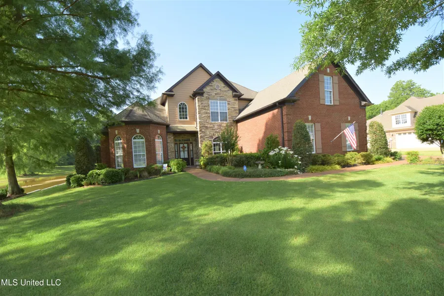 Great water front property sitting on over 1 ac, features 3 car garage, split plan, wood floors, open plan, high ceilings, 5 bedrooms or 4 bedrooms and bonus room. Large kitchen with granite counter tops, wood floors, stainless appliances, breakfast bar, eat-in kitchen, and view into the Great room. The great room has wood floors, gas log fireplace and view to back yard/pond. Home has a formal dining room, and 2 bedrooms and 2 baths down stairs. The master with wood floors, tray ceiling, sitting area, jetted tub, double vanity, walk-in shower, his & her closets. Upstairs has 3 additional bedrooms or 2 bedrooms and bonus room. Beautiful water view out back on the covered patio.