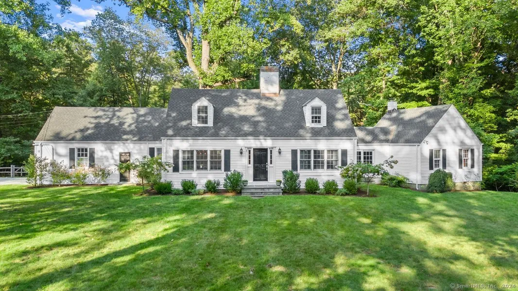 Nestled on a peaceful, no-outlet private road in one of North Stamford's most desirable neighborhoods, this stunning three-four bedroom, three-bath home offers privacy and tranquility. Set on a level corner lot over an acre, the property combines seclusion with convenience. Step inside to a spacious living room featuring a cozy fireplace, hardwood floors and built-in bookshelves. French doors lead to a large, sun-filled stone patio-perfect for entertaining or relaxing. A bright breezeway with vaulted ceilings opens to a family room anchored by an impressive stone fireplace, creating a warm space for gatherings. The formal dining room connects to a modern white kitchen with quartz countertops, stainless steel appliances and everything today's buyer desires. The home offers a main-level bedroom, with two additional bedrooms upstairs allowing flexibility in choosing your primary suite. A bo...