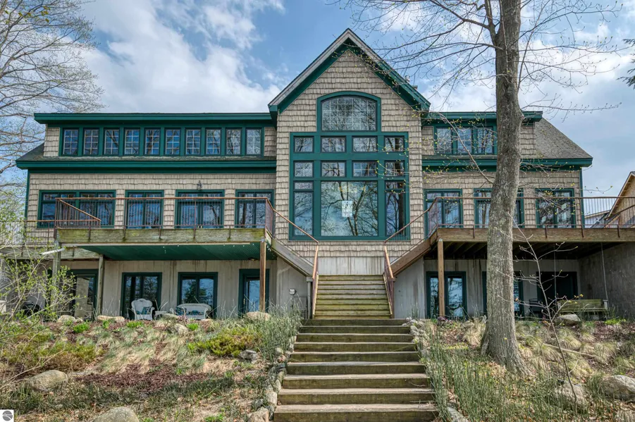 Waterfront, sunset view setting is spectacular for this special timber frame home located at the north end of Deepwater Point, on Bay Valley Drive. This is a quiet beachy stretch of East Bay that is largely sand, perfect for small run around boating, fishing, leisurely cruising. Lochenheath golf club is a stone's throw away as well. Estate sized home with room for all, and 4 fireplaces with natural stone hearths. 5? Hickory Floors with radiant heating throughout the main and bottom levels providing a therapeutic feel year round. Say goodbye to any stresses of the day with a soothing dry sauna experience followed by a vitalizing dip in the East Arm of Grand Traverse Bay. Exterior and interior railings by artist John Goss, a metal sculptor. Original cottage was built in 1975; additional square footage was added in 2004.