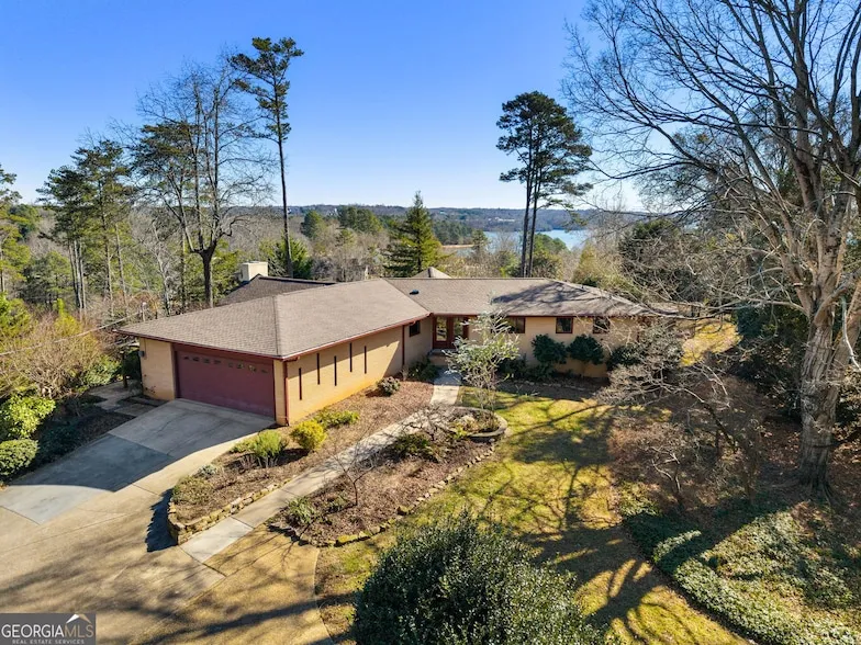 Move-in ready and completely renovated, this 3-bedroom, 2-bath ranch is ideally located in the highly sought-after Chattahoochee Estates with stunning year-round views of Lake Lanier and a convenient, walkable location near golf and Country Club. Thoughtfully redesigned, the home features floor-to-ceiling windows throughout, filling the interiors with natural light and showcasing serene lake views from nearly every room. The updated kitchen is open to a vaulted den anchored by a striking stone masonry fireplace and a dramatic wall of windows-perfect for both everyday living and entertaining. A finished basement adds valuable flexibility with an additional flex room and spacious recreation room, ideal for home office, or media space. Step outside to the expansive wrap-around deck, designed to capture breathtaking Lake Lanier views and overlook the peaceful, wooded setting. This outdoor living space is ideal for morning coffee, sunset gatherings, or quiet relaxation, seamlessly extending the main living areas and enhancing the home's connection to nature. Recent renovations include high-end casement windows, updated cabinetry, a new high-efficiency HVAC system, and a new roof, offering peace of mind and modern comfort. With a desirable ranch layout, lake views, and a prime Chattahoochee Estates location, this fully renovated home is truly turnkey and offered below recent appraisal.