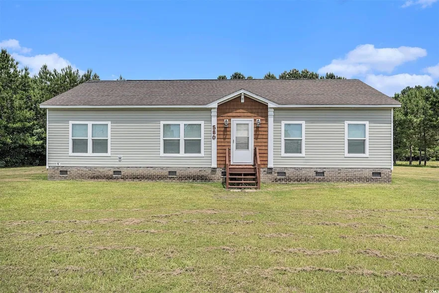 No HOA! This 3-bedroom, 2-bath home sits on over an acre of land and offers a spacious split floor plan with an open concept living. The large laundry/mudroom includes a full sink and convenient drop zone, plus a side entrance with a ramp for easy entry. The primary suite features a walk-in closet and a beautiful bathroom with a large tiled shower and double vanity. A great built-in desk area in the hallway adds functionality and charm perfect for working from home or managing daily tasks. This property is a blank canvas ready for your vision. Bring your RVs, boats, and outdoor toys there's plenty of space to park them all. Just 20 minutes to the beach, this home offers flexibility you ve been looking for!