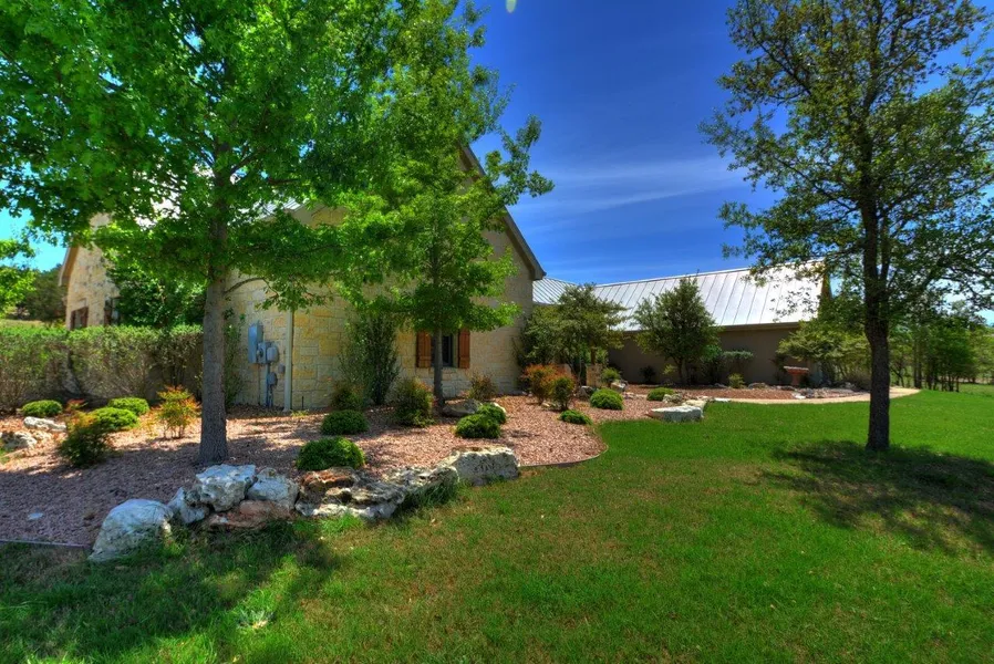 Located on a cul de sac street in the impressive Estate Section of Comanche Trace, this home is a true Hill Country design from the Texas Limestone to the standing seam metal gable roof. Expansive & open concept allows for comfortable family living. Great rm features a commanding rock fireplace w/wood beamed cathedral ceiling & chandelier. The gourmet kitchen has granite counters, wood cabinetry, eating bar, island, stainless appliances & large window for natural lighting. Private master suite features walk-in closet, sep/lavatories, garden tub, large shower, granite counters, & lots of cabinetry. 3/Guest bedrooms w/walk-ins & 2/baths. Rec rm is perfect for family favorite table games & media entertainment. Covered back porch, patio, bolder fence w/well maintained landscape design.